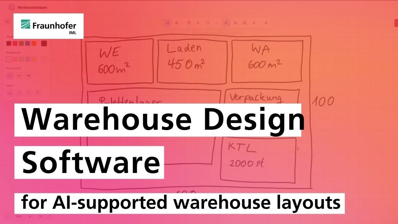 The warehouse design software "WarehouseDesigner" transforms warehouse layout sketches into structured digital layouts. The approach addresses the concept phase of warehouse planning, in which key decisions are often only available as block layouts. AI-based computer vision recognizes functional areas, interprets designations and capacities, and uses this information to generate digital variants.